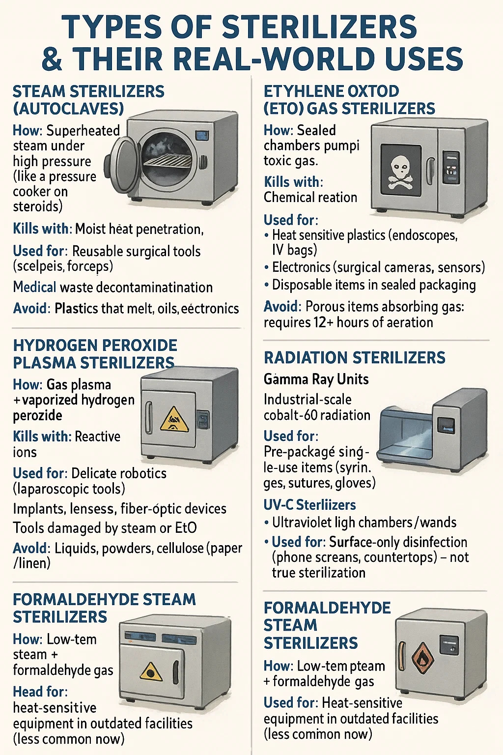 প্রকার স্টেরিলাইজার & তাদের বাস্তব-বিশ্বের ব্যবহার