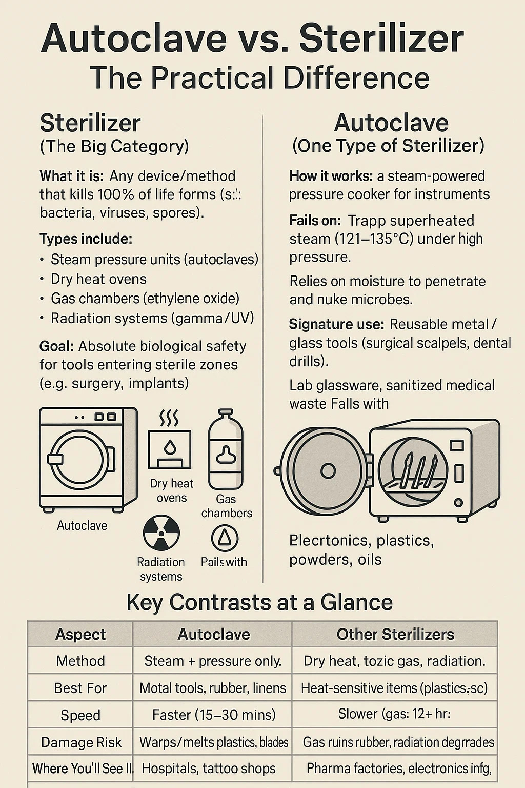 অটোক্লেভ বনাম স্টেরিলাইজার: ব্যবহারিক পার্থক্য